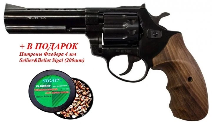 РЕВОЛЬВЕР ПАТРОН ФЛОБЕРА PROFI-4.5" ЧЕРН/БУК + У ПОДАРУНОК ПАТРОНИ ФЛОБЕРА 4 ММ SELLIER&BELLOT SIGAL (200)